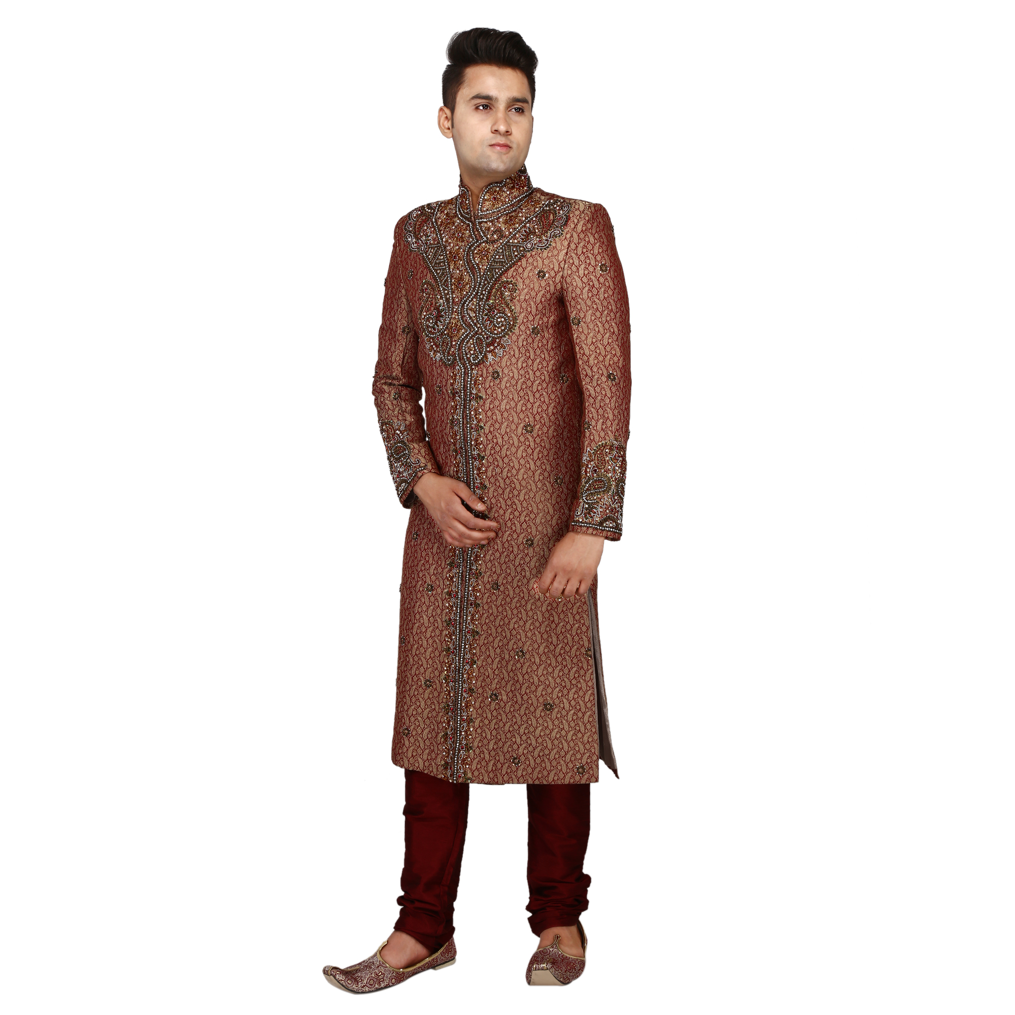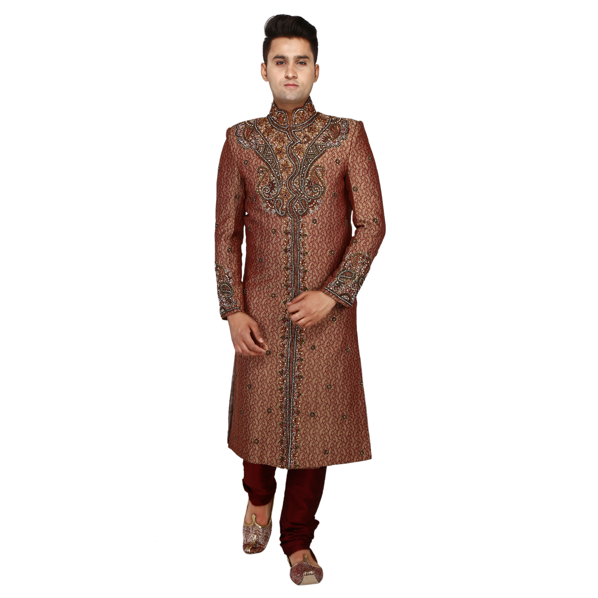 Maroon Embroidered Sherwani